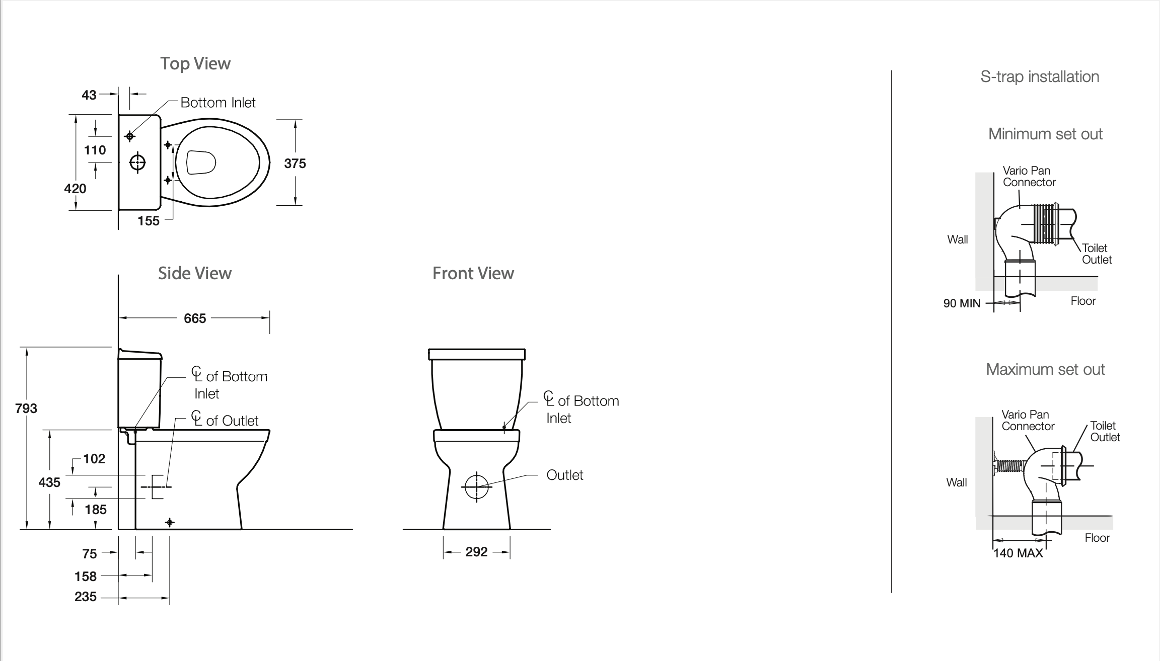 | S-Trap | Set out: 90 – 140mm |
